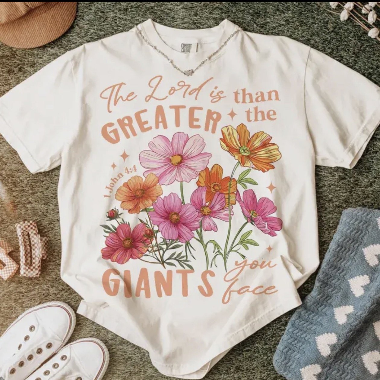 Store › The Lord is Greater Image 1 of 1 The Lord is Greater $34.00 This ivory tshirt screams Spring time. The Lord is Greater than the Giants you face. Ivory: Small Medium Large Add To Cart Added! This ivory tshirt screams Spring time. The Lord is Greater than the Giants you face.
