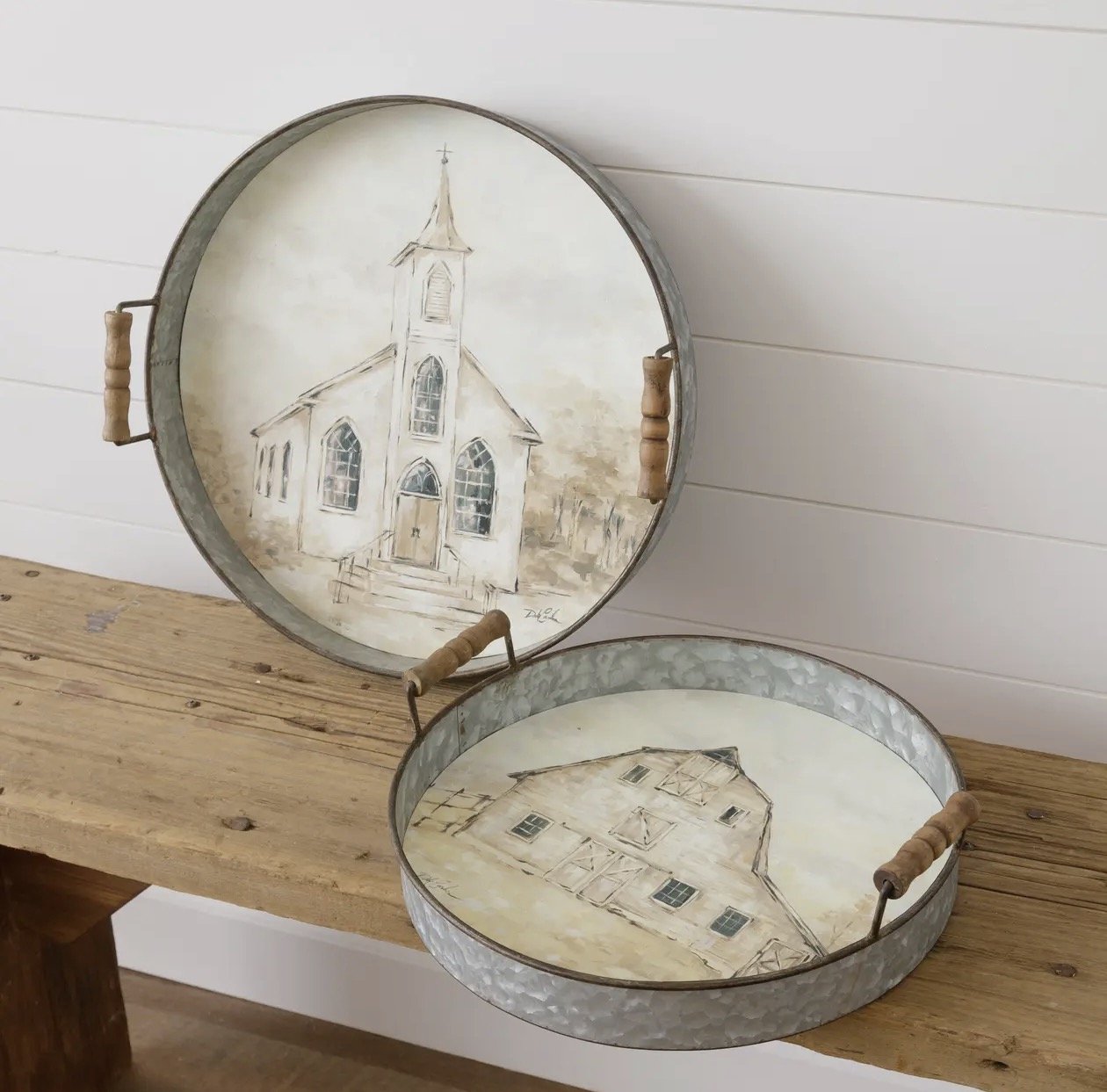 Store › Barn and Church tray set Image 1 of 1 Barn and Church tray set $92.50 This set will be beautiful in any setting. Use as a tray or put it on a shelf to display Add To Cart Added! This set will be beautiful in any setting. Use as a tray or put it on a shelf to display